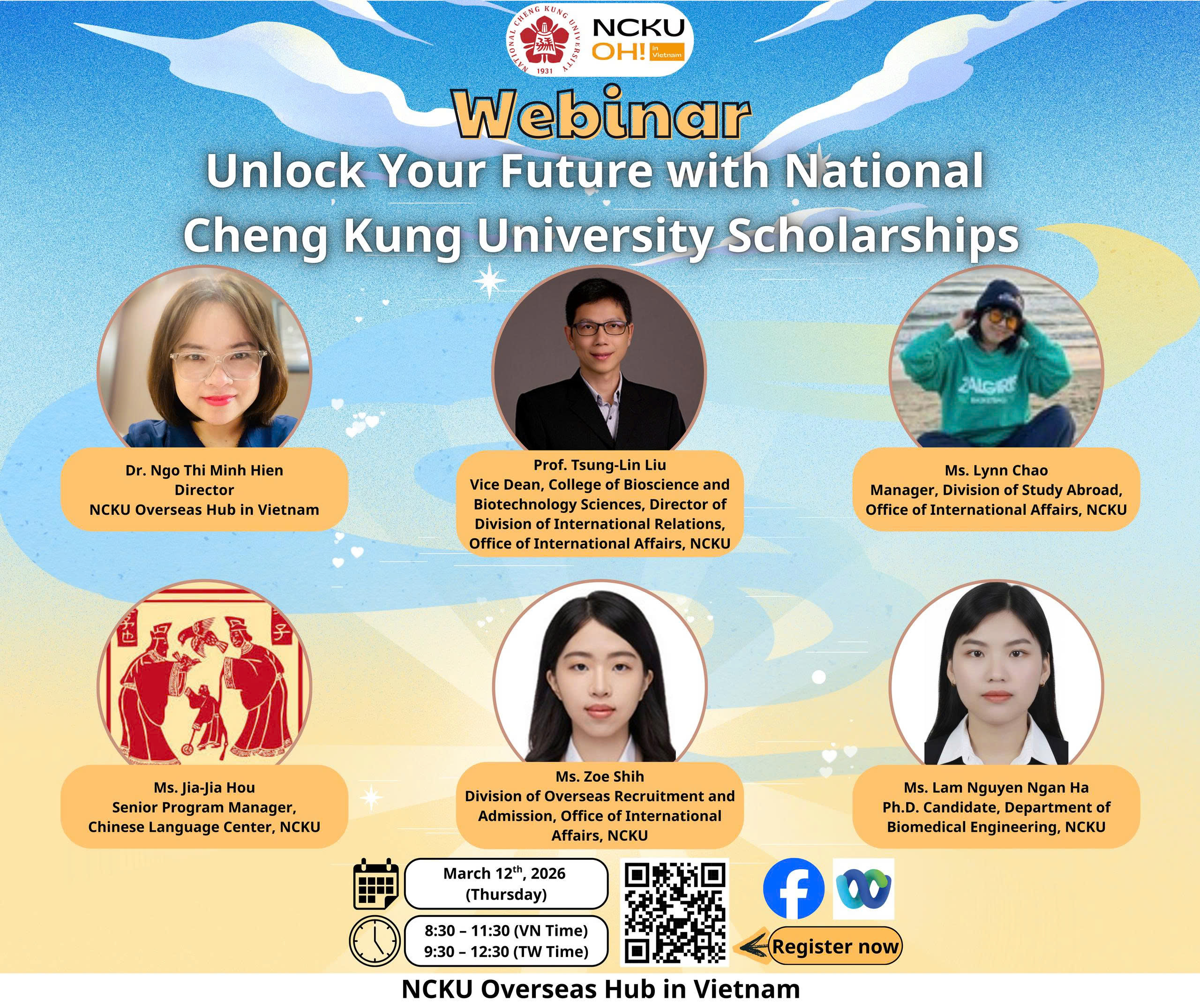 - Hình thức: Trực tuyến qua Webex Cisco và livestream trên Facebook của NCKU Overseas Hub in Vietnam